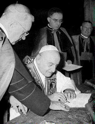 Papa Giovanni XXIII firma l'enciclica "Pacem in terris" l'11 aprile 1963