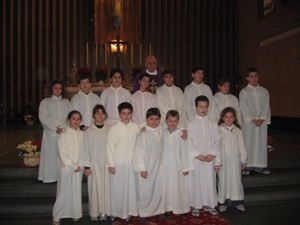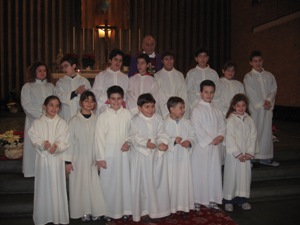 Anche quest'anno immancabile sono stati gli appuntamenti liturgici riservati al gruppo ministranti che ha accolto nella sua comunità 8 nuovi servitori all’altare. Infatti domenica 24 dicembre e domenica 7 gennaio, nella nostra parrocchia si sono svolte le cerimonie di vestizione di questi 8 nuovi fanciulli. Nicolò, Pietro, Nicola, Riccardo, Lisa, Francesca e Chiara nell’ultima domenica di Avvento hanno avuto l’onore di vestire la veste benedetta e di servire all’altare già il giorno del Natale del Signore. Francesco invece colpito da un attacco influenzale ha dovuto rimandare al 7 gennaio, giorno del Battesimo di Gesù, la sua prima messa servita molto onore. Dopo mesi di preparazione e incontri, con prove, preghiere e approfondimenti su chi è il ministrante e il suo ruolo all’altare, il parroco con il responsabile ha tenuto opportune le cerimonie allargando per l’ennesima volta l’armata bianca del Signore. Ora il gruppo di ormai 18 ragazzi, si incontrerà periodicamente con cadenza bisettimanale, al sabato pomeriggio per approfondire temi liturgici in preparazione alla Quaresima e alla Pasqua del Signore. |