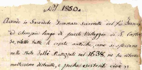 1850 conservato nel nostro archivio nel quale, il sacerdote Don Tommaso Sciarretta riporta un