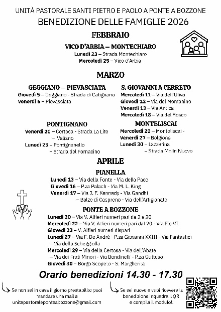 Chi volesse offrire la propria disponibilità può contattare il parroco ai numeri 0577 357282 o 347 5054338, oppure presentarsi direttamente in parrocchia.