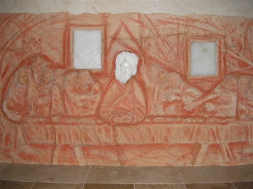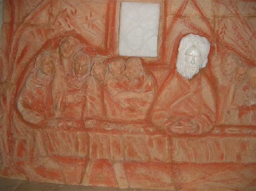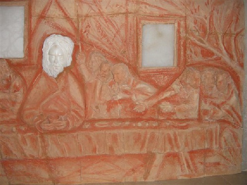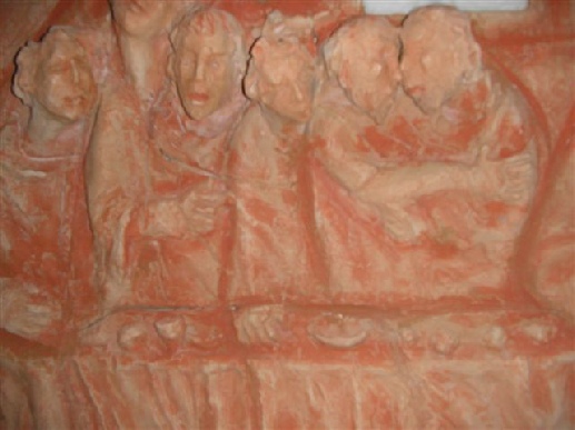 Ultima Cena, opera di Vincenzo Petrizzelli, in cotto con incastonature di onice di Volterra.