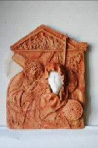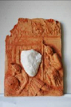 Il contrasto cromatico fra il bianco dell’alabastro, simbolo di purezza ed umiltà, con il caldo colore della terracotta, richiama al meglio la forte ed umanissima drammaticità del percorso al Calvario.