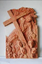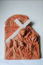 La Via Crucis, realizzata dal Prof. Vincenzo Petrizzelli, si presenta subito come un’opera intensa, forte e emozionale. Il segno continuo ed incisivo dell’artista, graffiante e nitido, fortemente espressivo e carico di umanità, si concretizza in una materia duttile e insieme tenace perché plasmato da mano sapiente.
