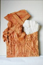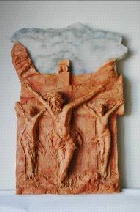 L’immagine del Cristo, così forte e fragile insieme, diafana e corrosiva, intensa e lacerata come tenue tela al vento, pare emergere e quasi “liberarsi”con immenso sforzo dal fondo materico, quasi come un catartico affrancamento da una materia che la opprime.