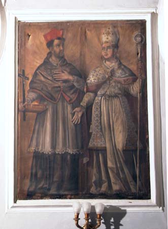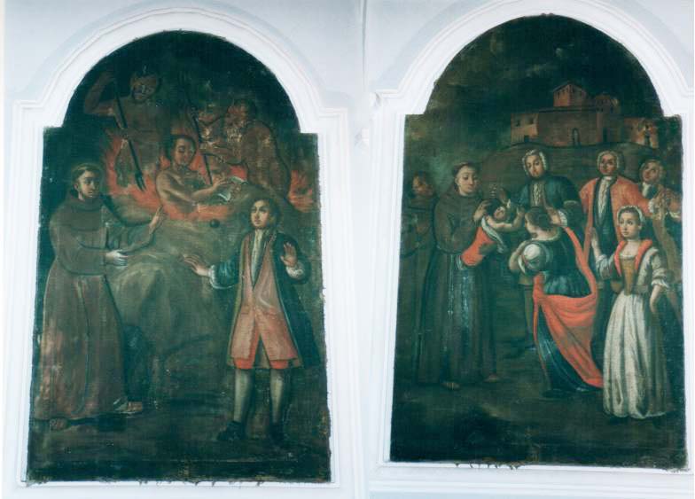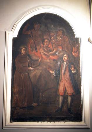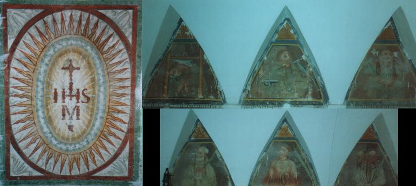Nello stesso vano del coro inferiore, sulle pareti ancora resistono tracce di affreschi della pima metà del Settecento, che raffigurano scene di Martiri Francescani : S.Girolamo , S.Pietro Ascanio , S.Francesco di Bruxelles , S.Antonio di Norvari , S.Cornelio e S.Dano .