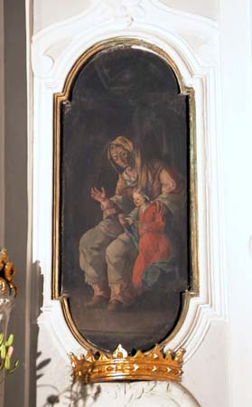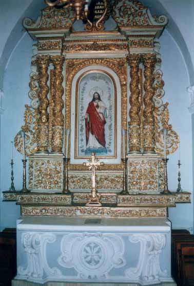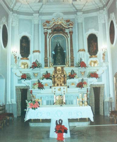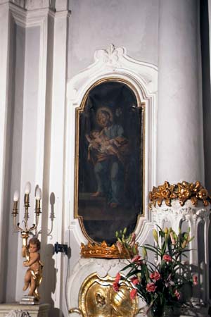 Il paliotto dell’altare è di pietra decorato da stucchi.
