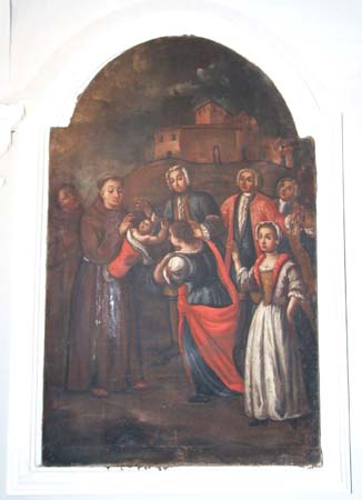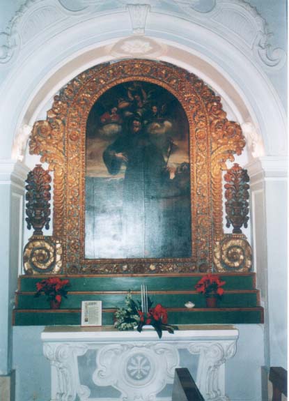 Del quadro di S.Antonio da Padova rimane solo memoria nel verbale, tuttavia dalla Nota dei conventi del 1664 si deduce che i frati minori di Taviano, nel far disegnare il sigillo del convento, non si ispirarono alla statua lignea di S.Antonio da Padova che si trova sull’omonimo altare e che per fattura è posteriore, ma all’immagine dell’antico quadro che, dalla descrizione del timbro, doveva rappresentare il Santo mentre reggeva con la mano destra il Bambino Gesù e con la sinistra il giglio.