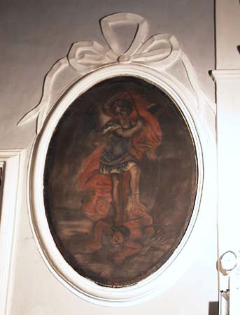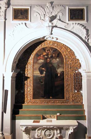 Sul lato di destra della medesima abside, al centro è fissata la tela di S. Pietro d’Alcantara, mentre nelle lunette laterali sono incastonate le tele di S. Michele Arcangelo e di S. Tommaso d’Acquino, del secolo XVII. Anche la tela di S. Pietro d’Alcantara deve essere attribuita a fr. Giacomo da San Vito. Questo lavoro, anche nei particolari, ripete l’analogo soggetto che il pittore sanvitese propose nella chiesetta di S. Rocco a Matera nel 1661.