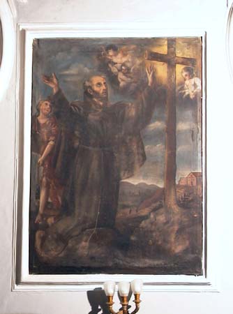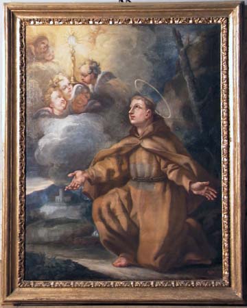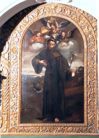 Attualmente adornano l’abside, al centro una tela raffigurante l' Indulgenza della Porziuncola e quattro tele ovali che raffigurano S. Giovanni di Capestrano, S. Giacomo della Marca, S. Anna con la Vergine Infante e S. Giuseppe. Si tratta di quadri di anonimi degli ultimi decenni del XVII e degli inizi del XVIII secolo.