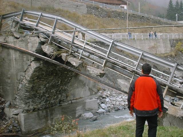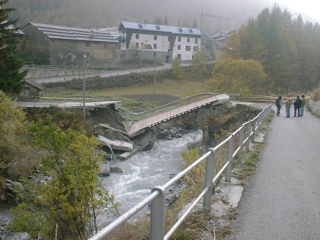 il suo "tributo" a questo evento: il ponte sul Chisone non c'è più.