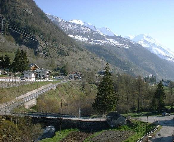 La casa alpina e il Chisone dalla strada di accesso alla frazione