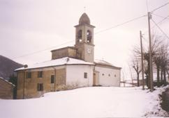 | Fig. 1: Monte Terso e l'inizio della Valle di S. Antonino. (A.D. 2000) | Fig. 2: La Parrocchia di S. Antonino a gennaio 2000. |