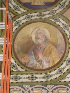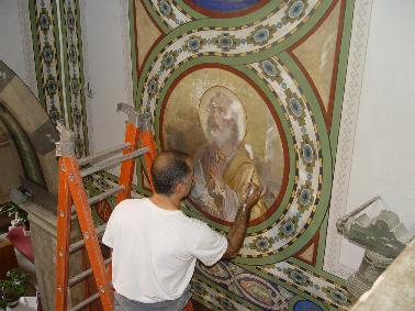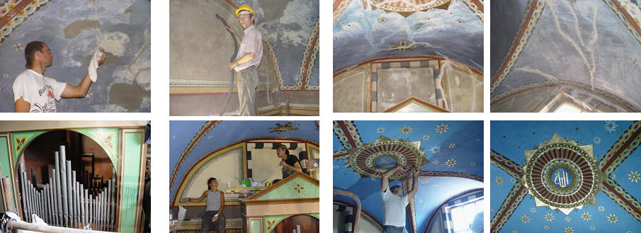 sistemazione e recupero dei decori delle volte ristrutturate del Presbiterio.