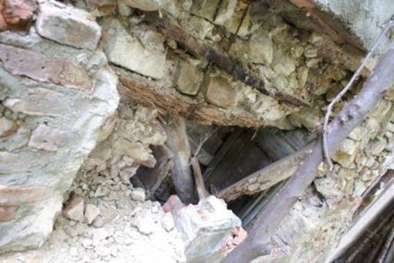 Causa ipotizzata: cedimento dei materiali e/o compressione dall'interno.