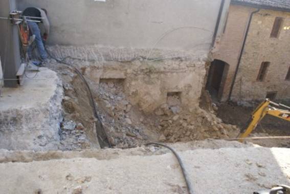 2011.11.03 Si rende necessario un intervento urgente per eliminare i pericoli di crollo e di ulteriore danneggiamento dei muri interni della canonica, anche a salvaguardia e sicurezza dei fruitori del sagrato e della canonica . Il Direttore dei Lavori: 1) Constata che è impossibile svuotare i detriti dalla breccia occidentale data l'estrema pericolosità dell'intervento che potrebbe causare crolli di materiali improvvisi sugli operai e assestamenti gravi della platea soprastante. 2) Avvisa il Parroco della situazione e propone l'intervento di demolizione della platea del sagrato, con svuotamento dei detriti e rifacimento di un nuovo solaio, portante almeno 40 q/m2. 3) Avverte il Sindaco essendo il sagrato una struttura ad uso pubblico. 4) Propone al Parroco ed al Sindaco (che accettano) una riunione immediata il giorno dopo (03 novembre 2011 alle ore 10) con il Consiglio Parrocchiale per decidere i lavori da effettuarsi. |