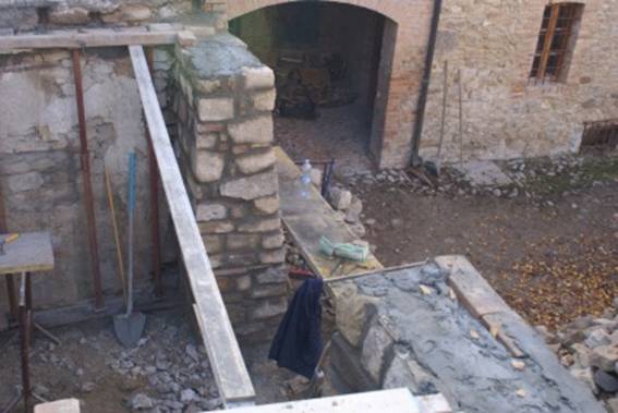 2011.11.16 Si inizia la costruzione delle spallette laterali in pietra (spessore cm 90). |