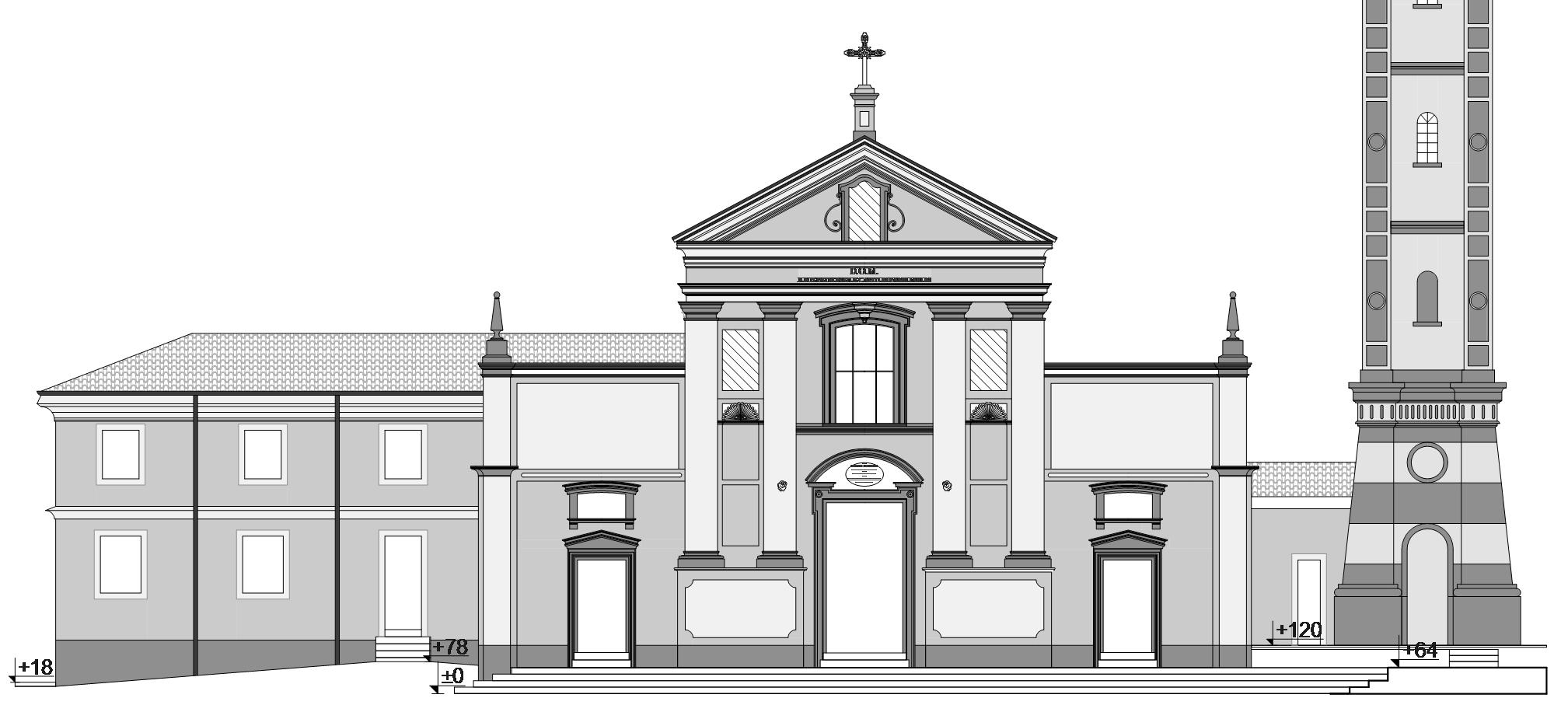 Applicazione converse: Timpano 1° Trabeazione 2° Trabeazione 4 Capitelli Cornice superiore della finestra centrale Cornice inferiore del davanzale della finestra centrale 2 Cornici superiore marcapiano delle navate laterali 2 Cornici superiori delle finestre laterali