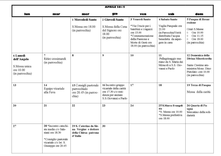 Aprile 2015 - Parrocchia di S.Elena Imperatrice
