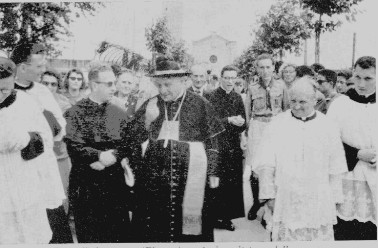 Il Patriarca di Venezia, Card. Angelo Roncalli in visita alla parrocchia per l'innaugurazione del nuovo campanile.