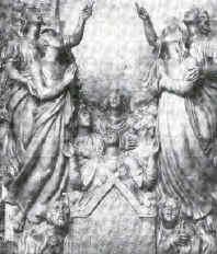 Il Purgatorio con le sue pene e lo speciale intervento di Maria in favore delle anime ivi penanti, é vivamente rappresentato da un gruppo magnifico, sia per forme plastiche sia per le movenze. Inizia col paliotto dell'altare per finire ai piedi della Vergine.