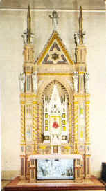 Il classico disegno dell'Altare é rilevato dal Tabernacolo dell'Orcagna esistente nella Chiesa dell'Orsanmichele in Firenze, e ridotto a proporzioni adatte dall'architetto veronese Francesco Banterle. Nella nicchia centrale troneggia una piccola statua del Santo Bambino Gesł, riproducente quella miracolosa che si trova a Praga. L'Altare di una splendida snellezza, finemente decorato con mosaici, é lavorazione della Ditta Prati, del luogo. Sotto ad esso un altro gioiello di finissima scultura in altorilievo di soli due blocchi raffigura il Presepio con la Santa di Lisieux che porta bimbi e bimbe alla scuola di Gesł. É l'opera pregiatissima dell'Arrighini e della sua scuola.