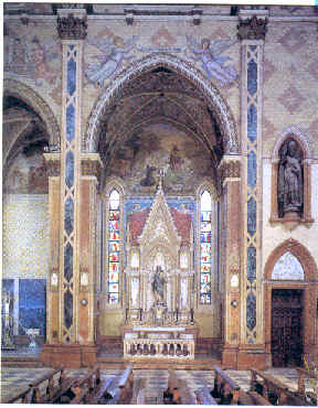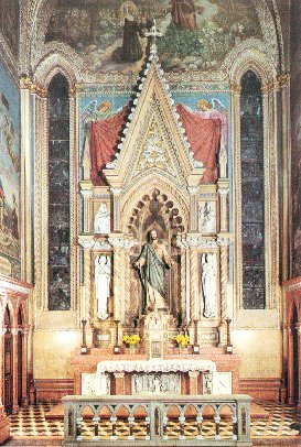 L'Altare venne eseguito dalla Società Marmifera del posto su disegno dell'Architetto Giovanni Salvi di Verona. Avvolto quasi in un ricco padiglione di mosaico dischiuso in alto da due Angeli, l'Altare slancia maestoso e solenne la splendida guglia su sei colonne a spirale ingemmate di mosaico. Al centro si apre la nicchia che contiene la devotissima statua in legno del S. Cuore. Il Moroder nello scolpire questa statua é riuscito a darle un’espressione supremamente bella. In un secondo tempo vennero aggiunti, a fianco della nicchia, due angeli in marmo di Carrara recanti fra le mani simboli della Passione, e due pannelli superiori raffiguranti S. Margherita Maria Alaçoque e S. Teresa Margherita Redi. Anche il Tabernacolo fu arricchito di ornati in mosaico. Belli i candelieri, di marmo, fregiati in mosaico e simboli al piede. I mosaici sulle pareti laterali rappresentano l'Ultima Cena e la Deposizione di Gesù dalla Croce: sono opera del Costaman. Le vetrate istoriate con quadri della "Via Crucis" sono lavorate a fuoco dalla ditta Ballardini di Verona. Nella parte inferiore dell'Altare tre bassorilievi in marmo bianco: Gesù nell'orto - Gesù coronato di spine - Gesù che porta la Croce sul Calvario.