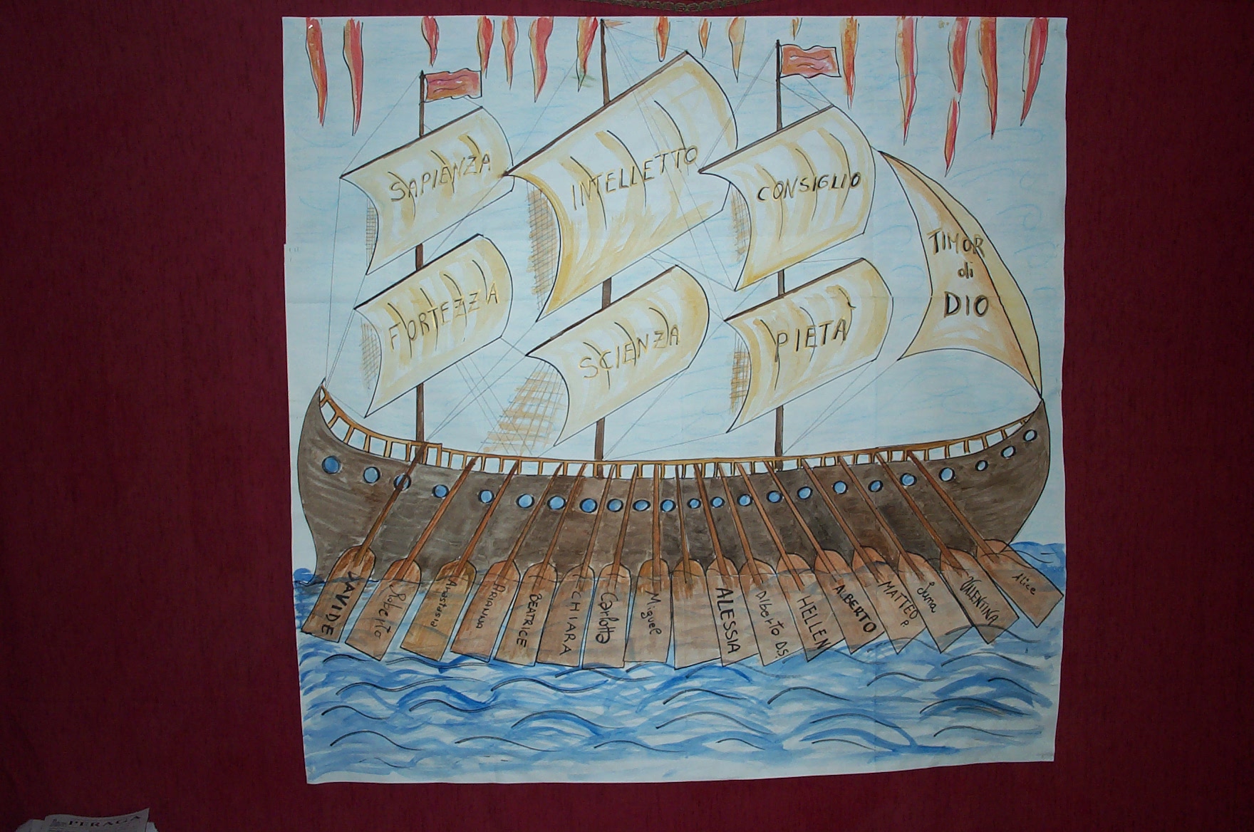 Celebrazione del Sacramento della Cresima 5 aprile 2008. Ragazzi di 3a media 16. Disegno simbolico offerte da una ragazza disabile