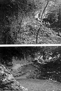 grotta, quasi completamente sommersa da una frana, in cui si notano ruderi