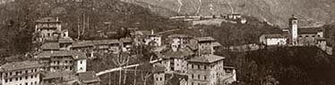 Particolare tratto da una fotografia del 1906 (F. Zanier Editore - Udine). Si notano i lavori di costruzione della nuova chiesa di Pielungo. Di particolare interesse il fatto che il nuovo edificio sia posto immediatamente a ridosso di quello vecchio, inglobando il preesistente campanile.