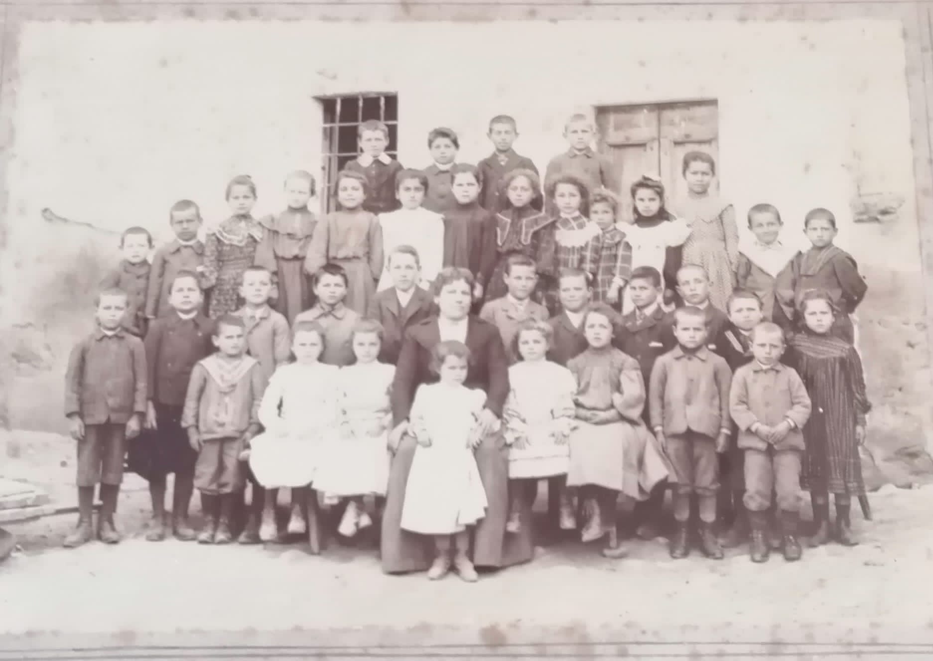 Bisnonna Menini Caterina maestra di Mondondone con i suoi alunni.