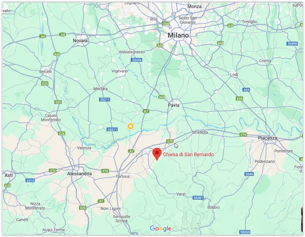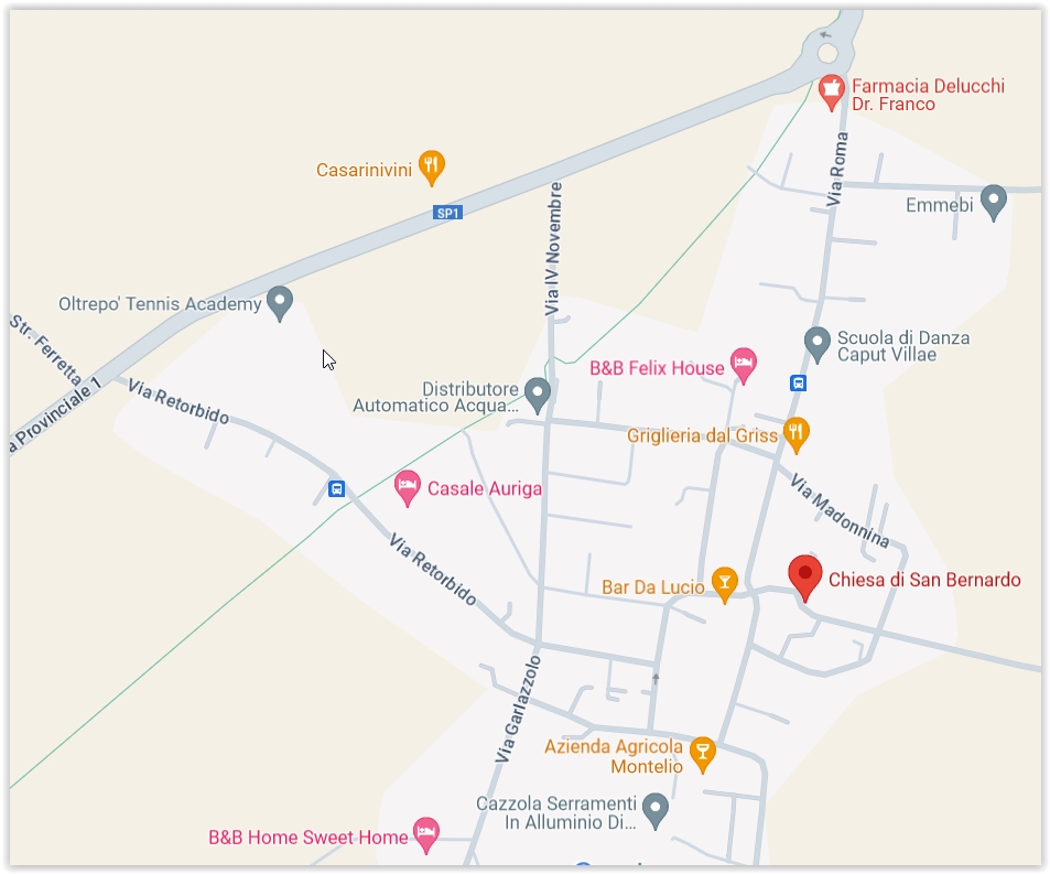 - Entrando in Rivanazzano, alla rotonda prendere la 2° uscita (diritto) in direzione Pavia