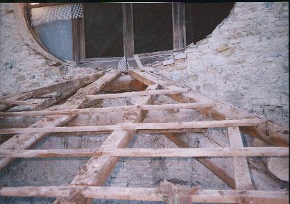 | Ponteggio in allestimento | Condizioni del voltino d'ingresso |