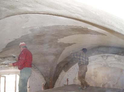 | Fase terminale della stesura dell'intonaco sulla volta del coro | |
