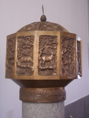 gradevole effetto. La Mensa Eucaristica e il pulpito, sono
