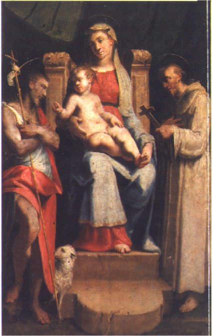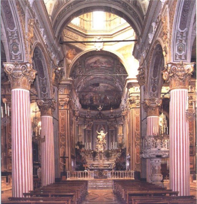 Nella cappella dell'abside della navata di destra si scorge un magnifico dipinto di Luca Cambiaso (1527-1585): Madonna in Trono con S.Bambino tra i Santi Giovanni Battista e Francesco d'Assisi.