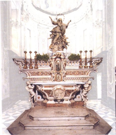 Sull'altar maggiore, in marmo policromo del 1700, si eleva la statua marmorea dell'"Assunta" di Francesco Schiaffino (1688-1763), donata nel 1790 da Carlo Maria Lomellino Vescovo di Ajaccio.