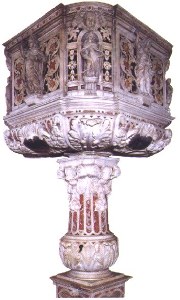 Di particolare interesse è il pulpito; opera in marmo policromo ad intarsio del 1600, con sculture a rilievo. Le stazioni della "Via Crucis" sono in formelle di ceramica, opera di Dario Ravano (1876-1950).